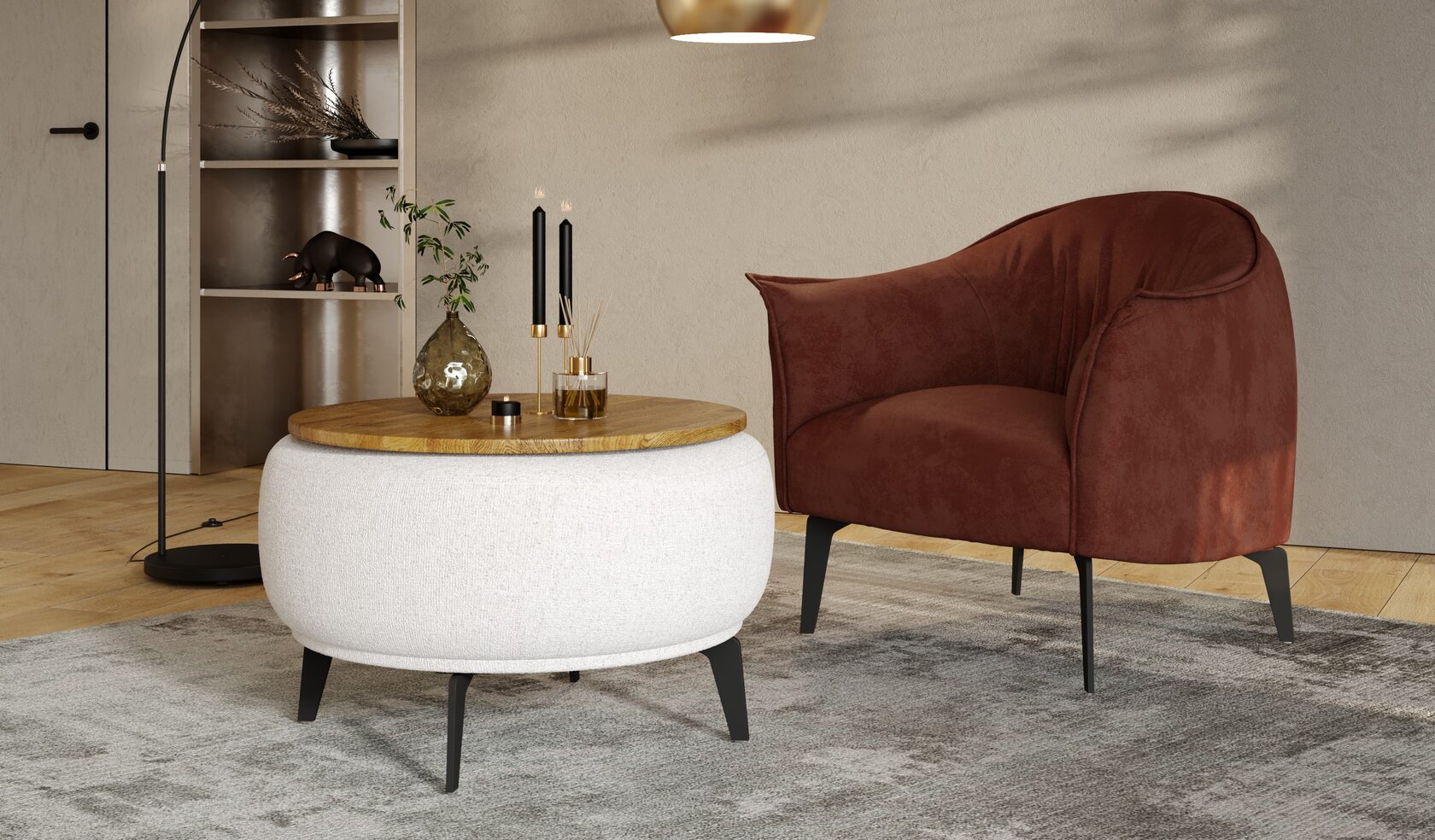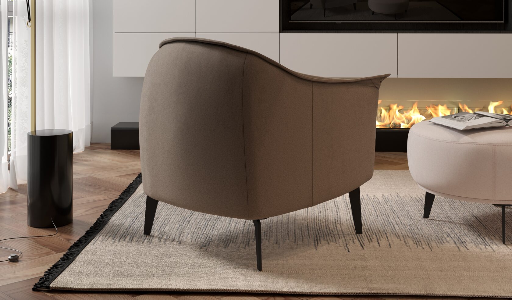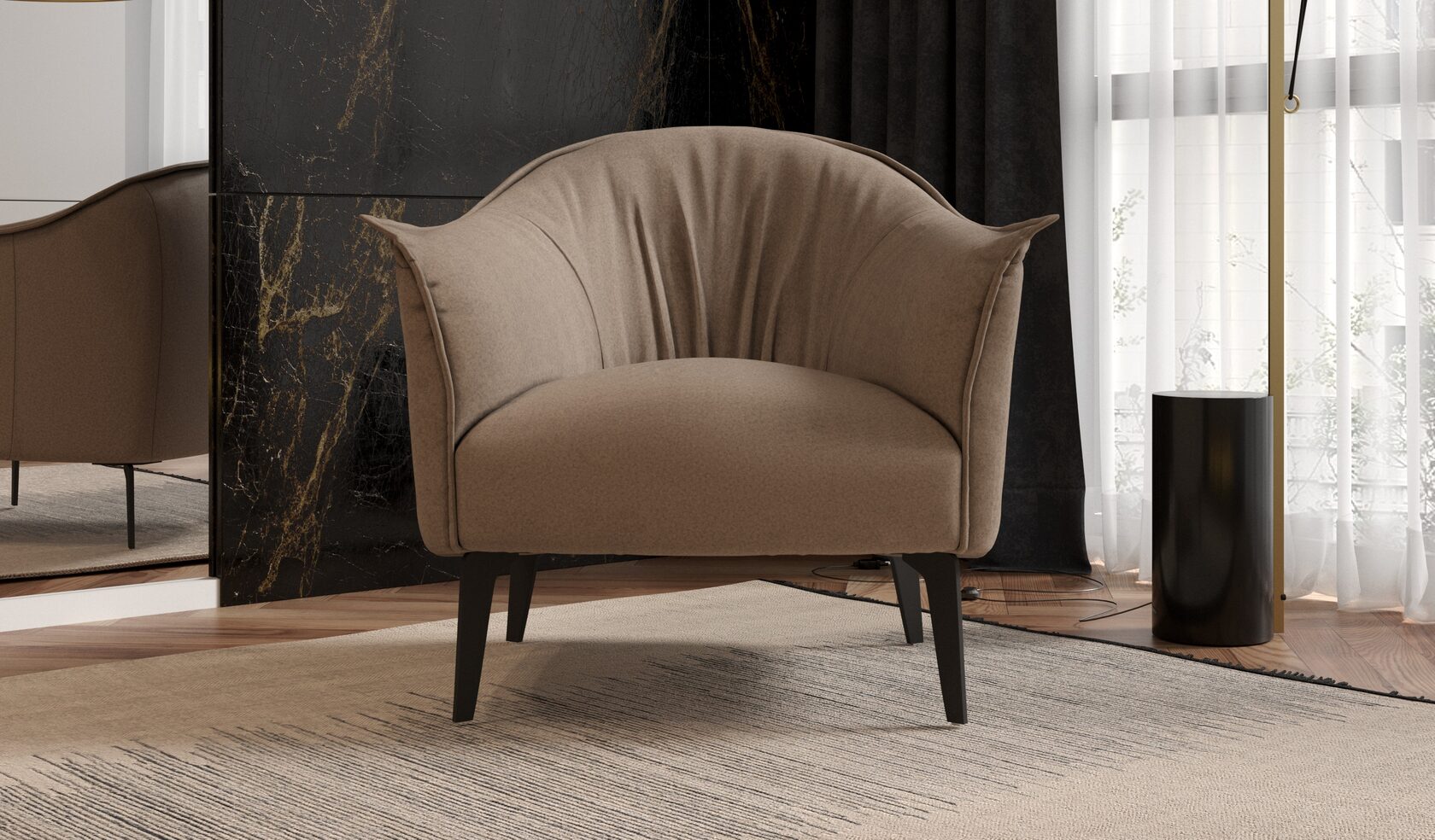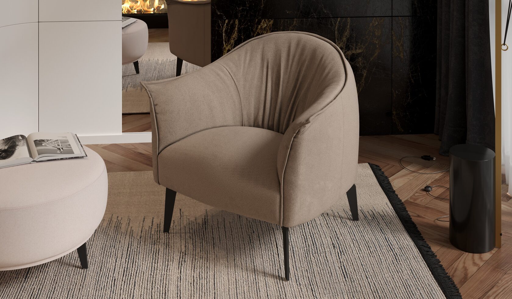 Кресло из коллекции Lucca — акцентное кресло на тонких ножках из металла с комфортной низкой посадкой и мягкими плавными линиями.