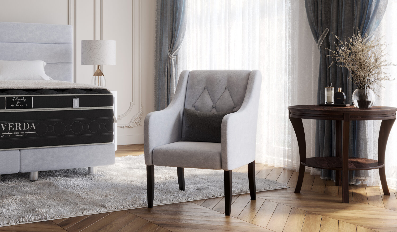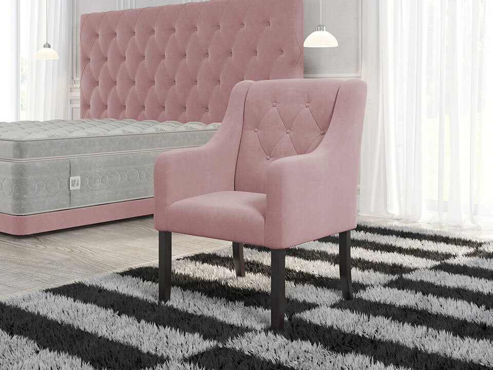 Деревянное кресло с мягкой обивкой и пиковкой. Стильное и удобное кресло VERDA поможет организовать в спальне удобное место для отдыха и чтения. Кресло имеет оригинальный современный дизайн.