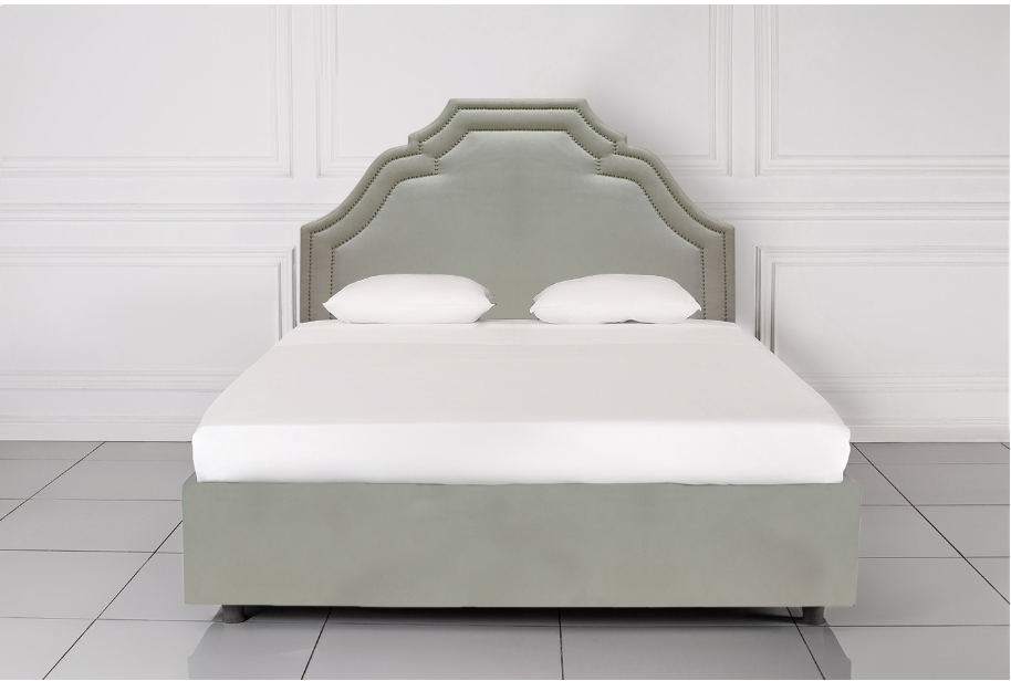 Главный козырь данной кровати - интересная и сложная форма изголовья с двойной линией декоративных гвоздей или не менее эффектных валиков, можно котрастных.