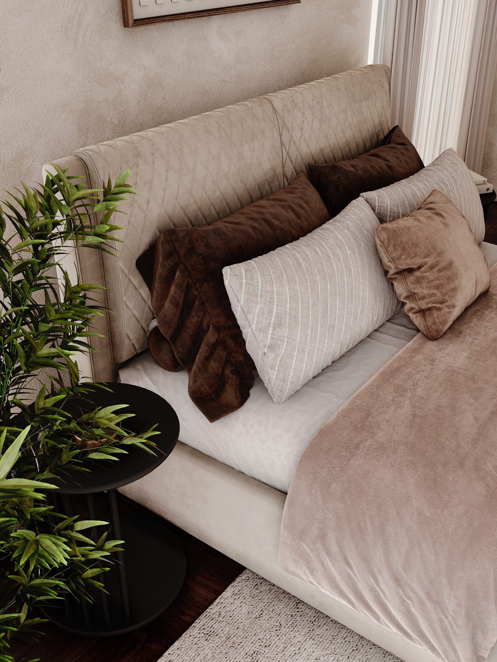 Кровать Латона 3 - удобная и функциональная кровать с декорированными стежкой элементами.