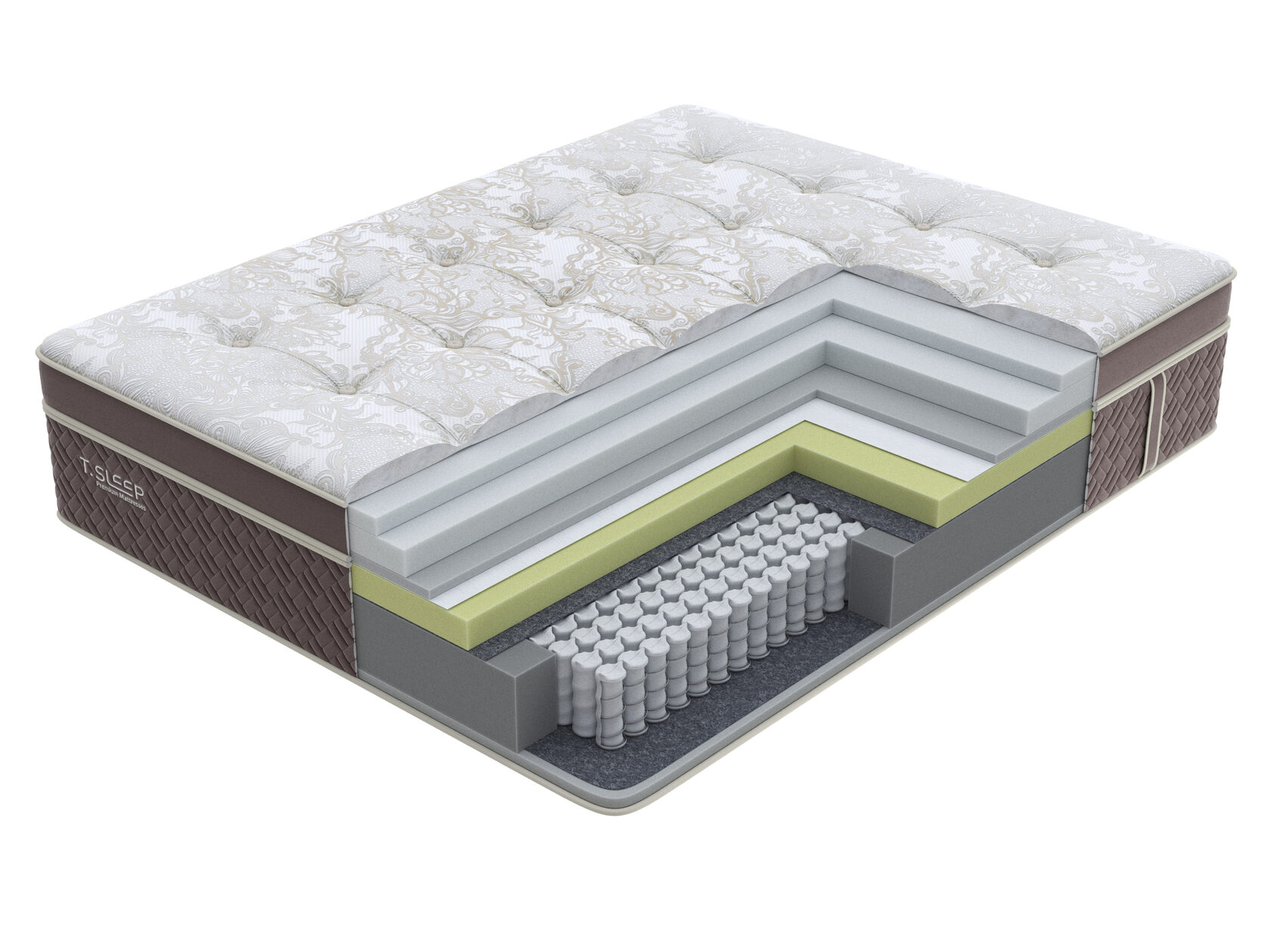 Высокий матрас с системой EuroTop для тех, кто ценит максимальный комфорт. Многослойная конструкция с пенами Memorix, Soft и Solid Foam, умными пружинами Double Spring и роскошным чехлом Golden Sand с кашемиром подарит вам непревзойденное ощущение невесомости и поддержки.