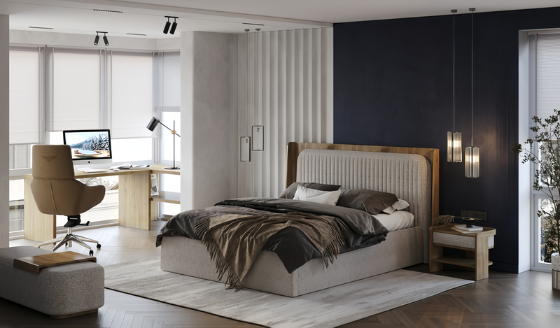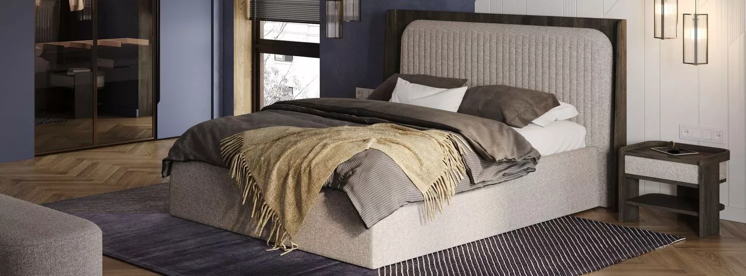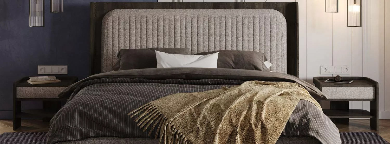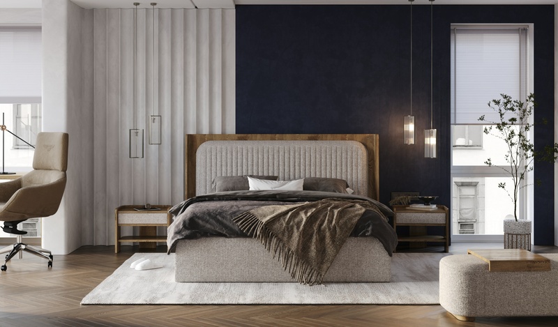 Стильное мягкое изголовье кровати с вертикальной строчкой разбавляет классические элементы и делает интерьер по-настоящему современным. Индивидуальность и уникальность предметов мебели за счет неповторимого рисунка массива, спинка выполнена полностью из массива дуба.
