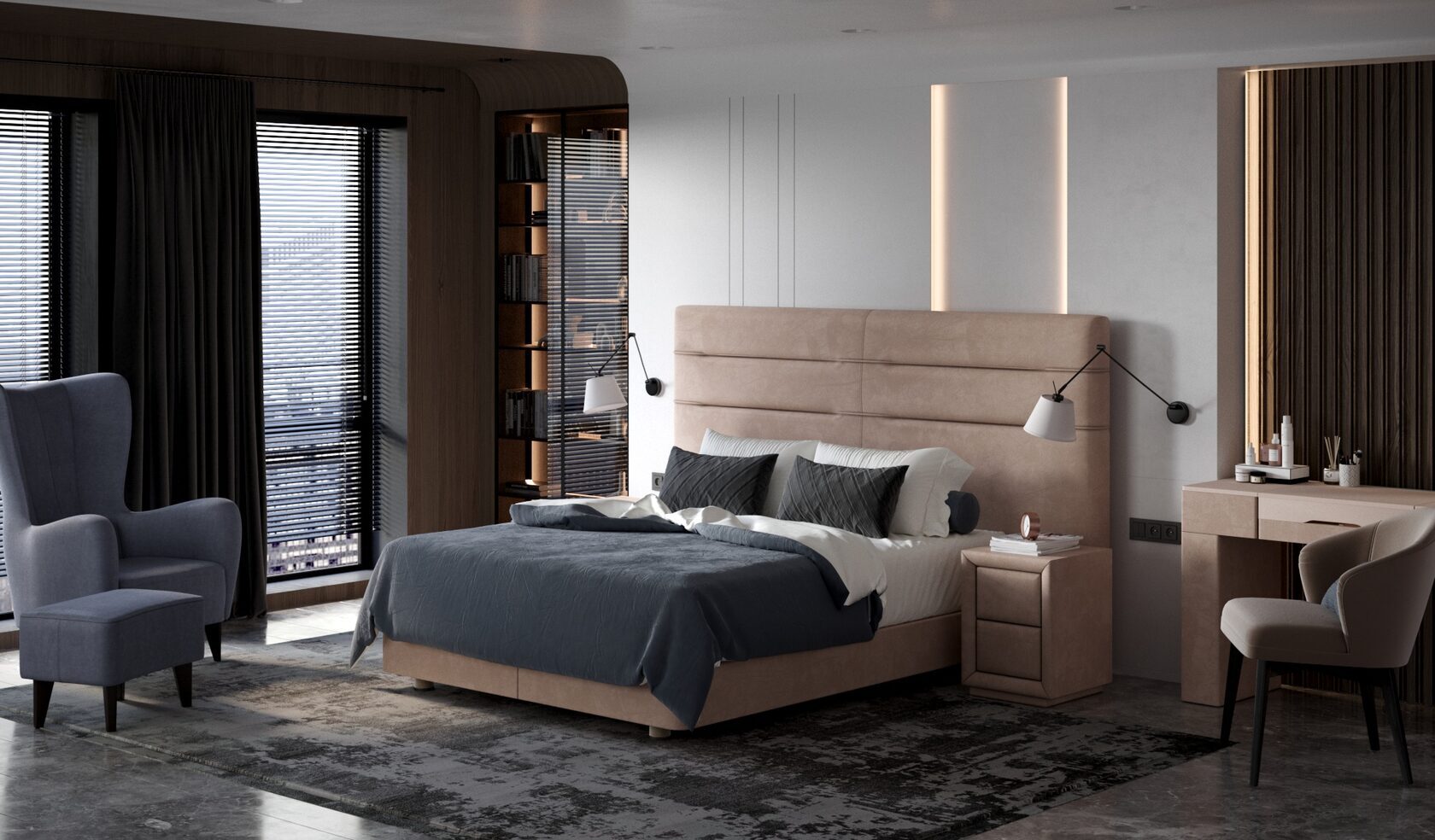 Изголовье — это центральный элемент вашей спальни. Модель Modern придает комплекту стильный современный вид. Для модели доступно три основания на выбор. Основания внутри усилены ребрами жесткости, а их лаконичная форма впишется в любой интерьер. Модель выпускается в нескольких коллекциях тканей, что позволит вам легко подобрать оптимальное решение для вашей спальни.