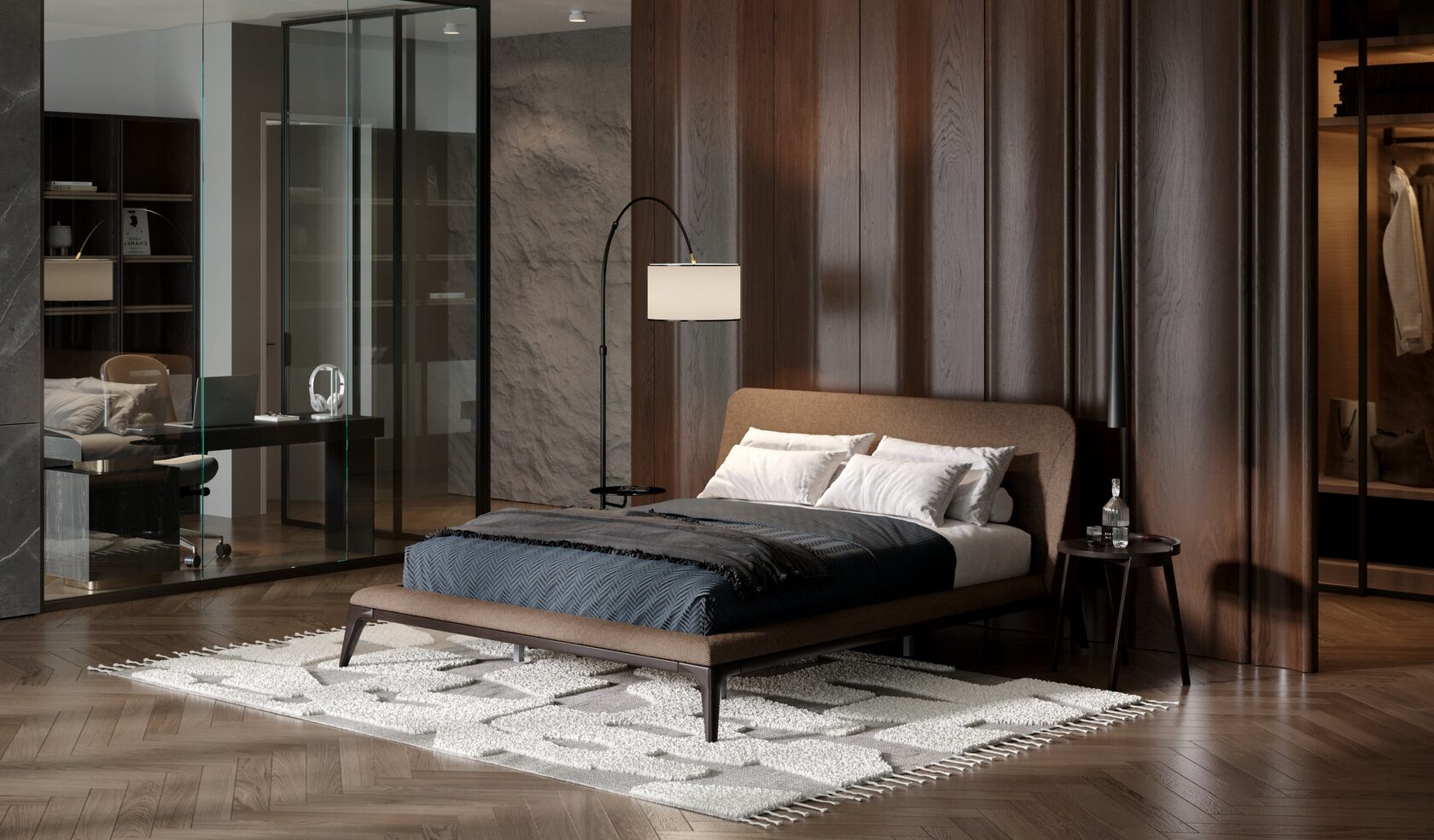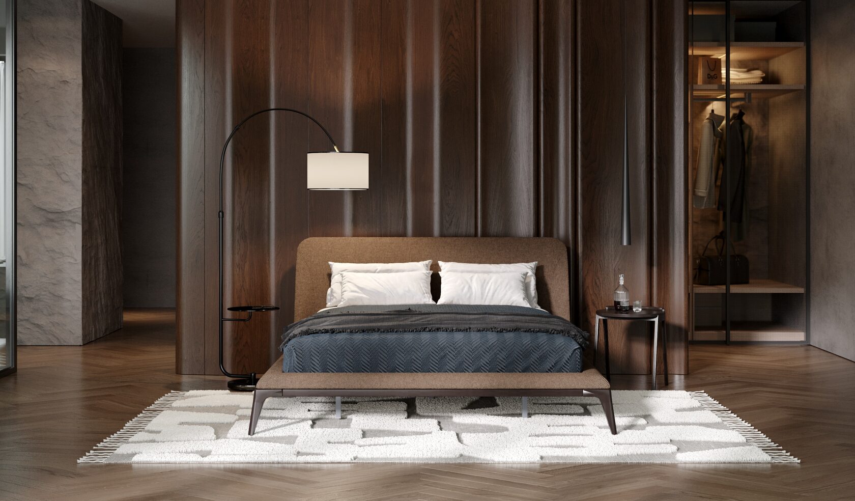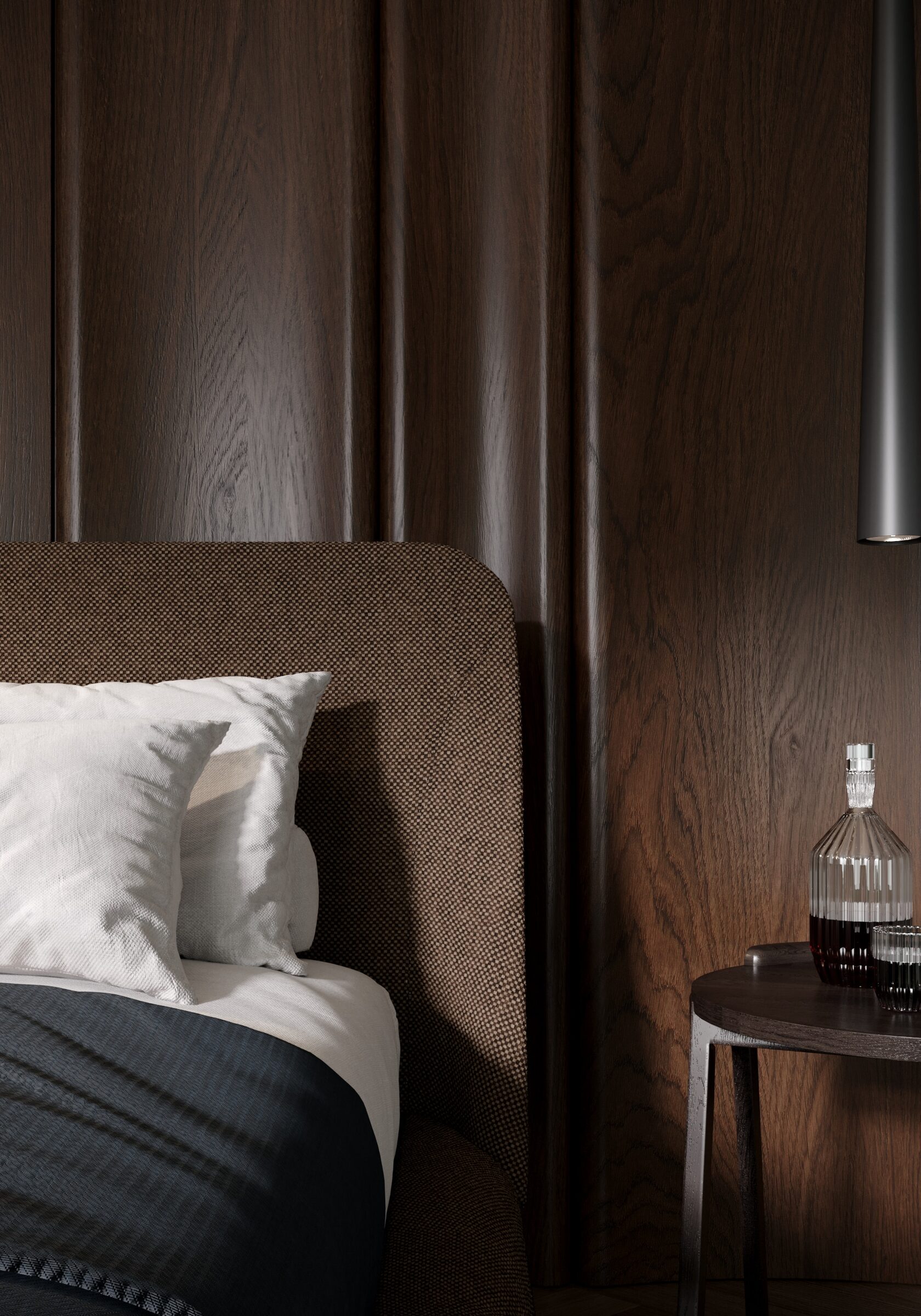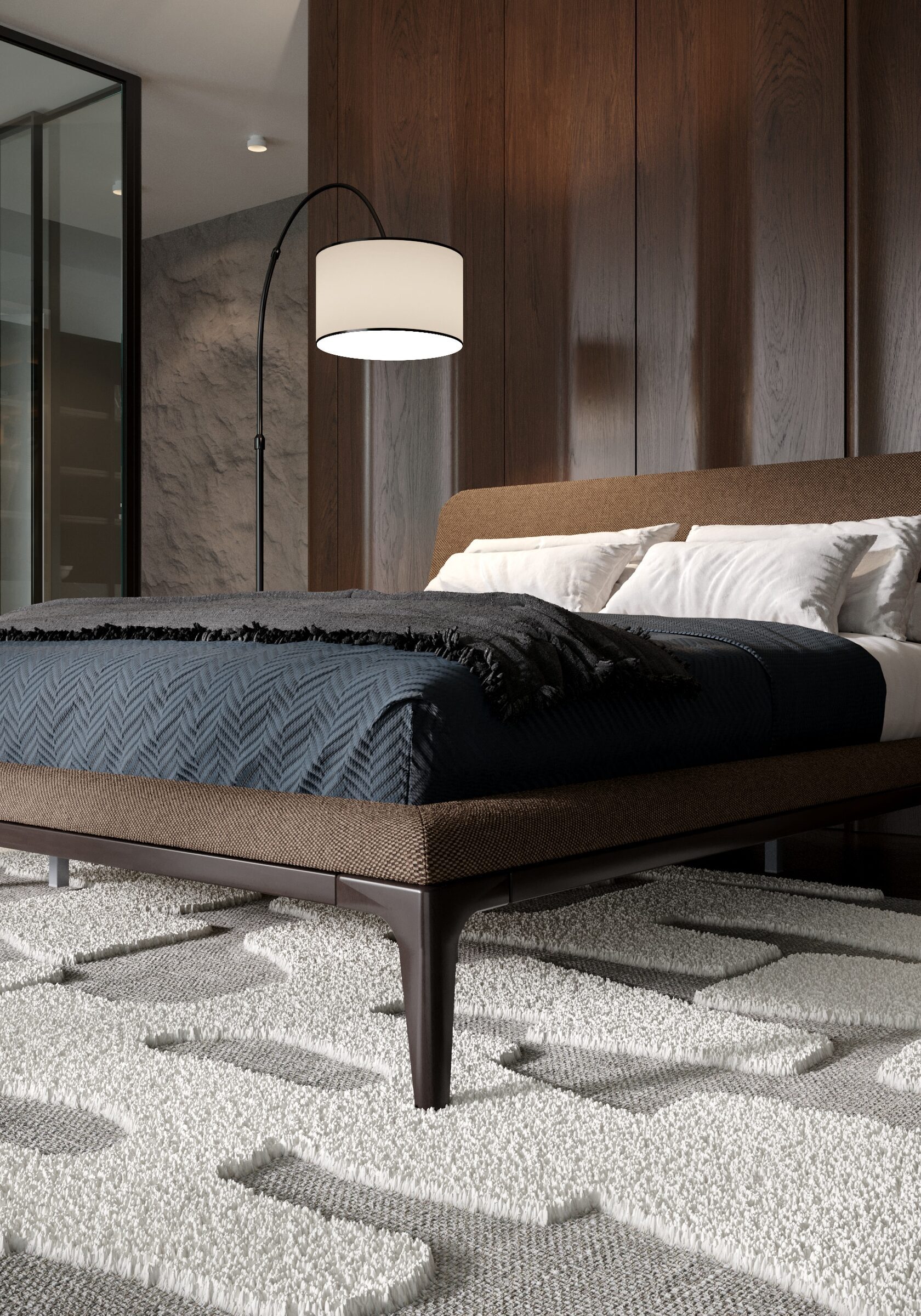 Ощущение мягкости заметное даже издалека, гармоничное сочетание массива дуба и исключительных текстильных исполнений. Изогнутый чувственный силуэт кровати выгодно подчеркнет современный стиль спальни. Дизайн тщательно продуман, в нем нет лишних деталей – каждая линия гармонична и сбалансирована.