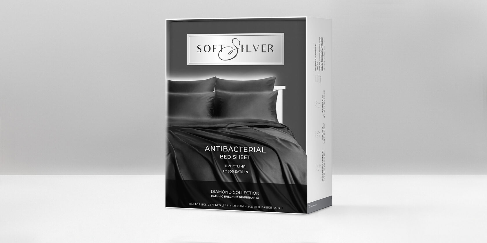 Постельное бельё SOFT SILVER – это абсолютная инновация, созданная по технологии AGTex: мягкая, шелковистая, дышащая и деликатная ткань сатин премиум с нитями из настоящего серебра. Изготовлена по запатентованной технологии. Обладает доказанными антибактериальными свойствами. Эффективность протестирована и подтверждена ФГБУ НМИЦ хирургии им. А. В. Вишневского.